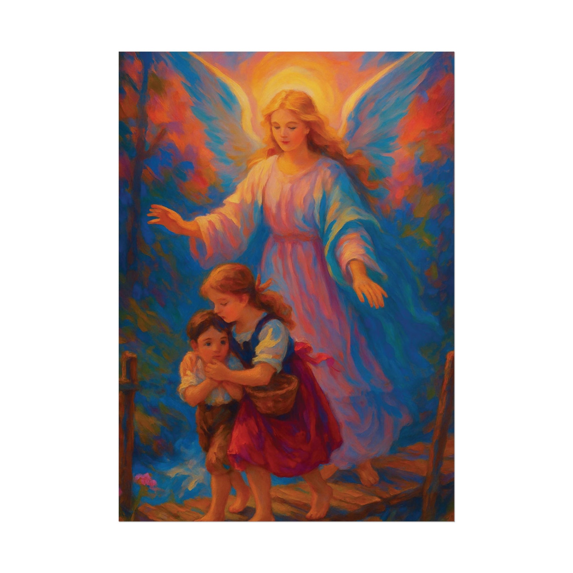 Guardian Angel Impressionist Art – Catholic Rolled Poster | 5x7, 8x10, 11x14, 16x20 Sizes