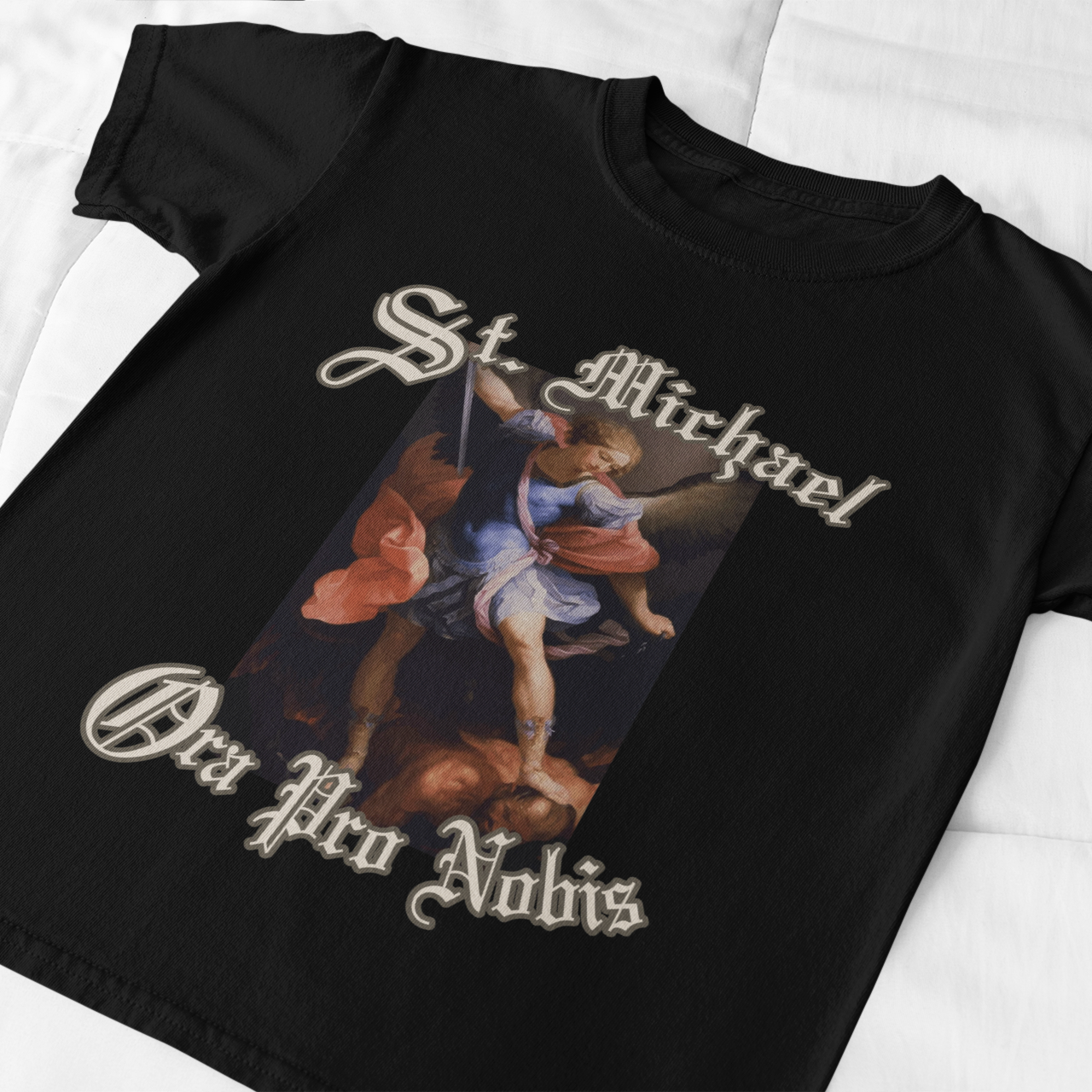 St. Michael Catholic T-Shirt – Religious Art Design – “Ora Pro Nobis”