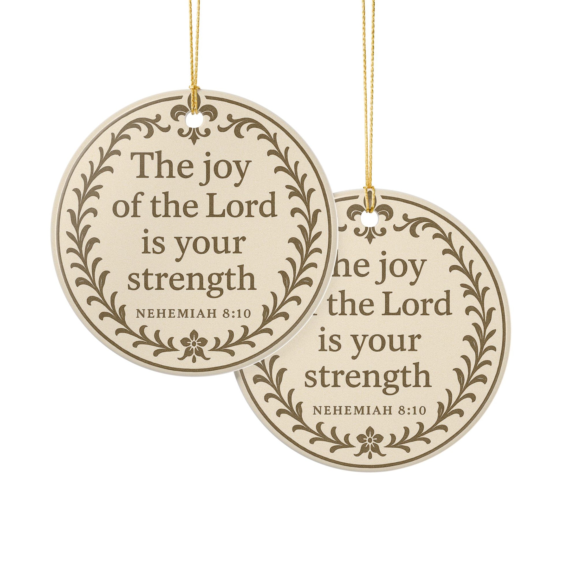 "The Joy of the Lord is Your Strength" (Nehemiah 8:10) Ceramic Christmas Ornament (2-Sided)